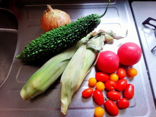 ゴーヤは母から。勤め先で毎日のように収穫できるそうです。