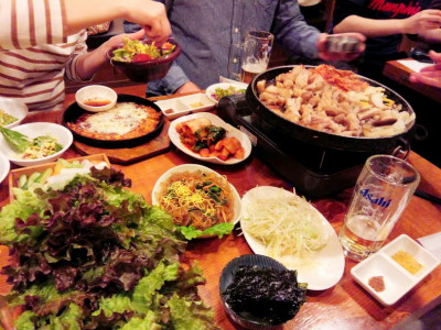 キムチ、チャップチェ、トッポギ、チヂミ、和豚の厚切りサムギョプサル!