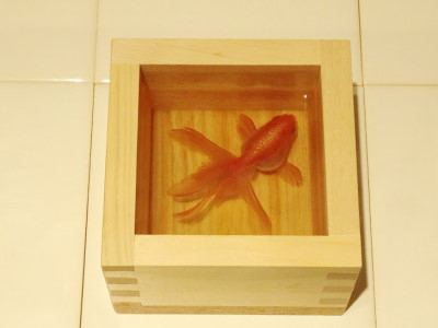 升の中に金魚が泳いでいるみたいだけど、これ絵なんですよー。