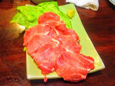 牛たんの刺身!おろしニンニクをたっぷりつけて。めちゃうま!!!