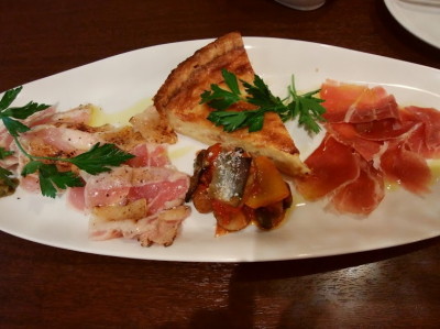 生ハム、キッシュ、鶏のたたき、ラタトゥイユ。