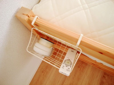 フックはセリアで買って来まして、ベッドサイドにかけました~。