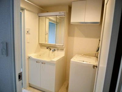 洗面所。少し前に団地の排水管工事があり、それに伴い室内工事も。