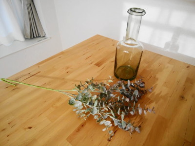 大きめのガラス瓶と、ユーカリのフェイクグリーンを買いました。