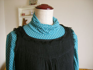 ネック部分は自然にくしゅくしゅするように、少しねじって縫いました。