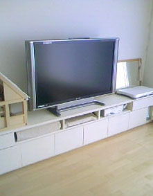 そして↑このテレビ台と医療棚のようなキャビネットは、Oさんの手作りなんです!