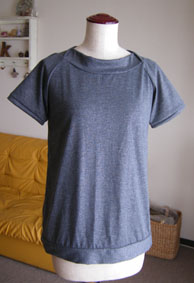 襟をクロスショルダーにして、袖もフレアをなくしました。