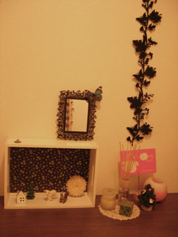 いつも変わり映えのしない玄関に少しだけクリスマスの飾りを出しました。