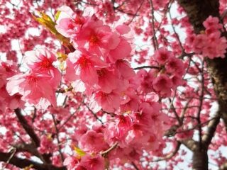 3連休、初日はまたまた母のお供で早朝から出かけました。めっちゃいいお天気だったので、帰りに母とお散歩。途中、1本だけ満開の桜の木がありました〜。たぶん、河津桜だと思うのですが、、、。鮮やかなピンクできれいでした!散歩途中に立ち寄ってみた神社...